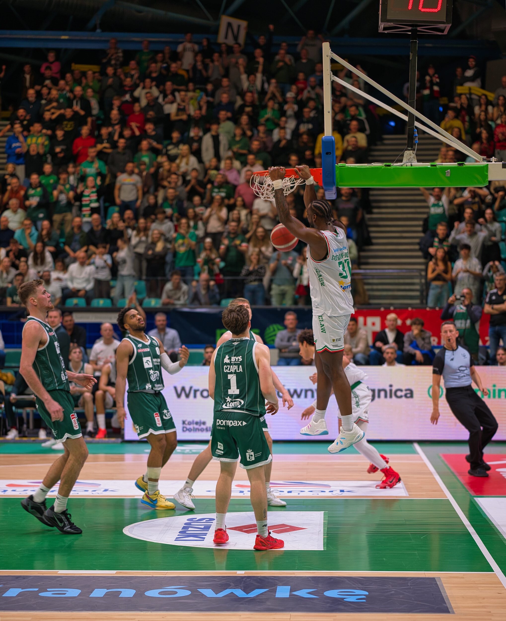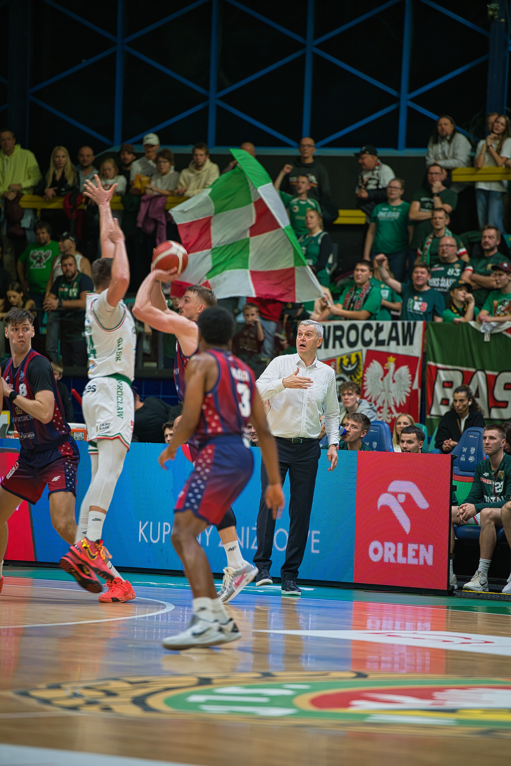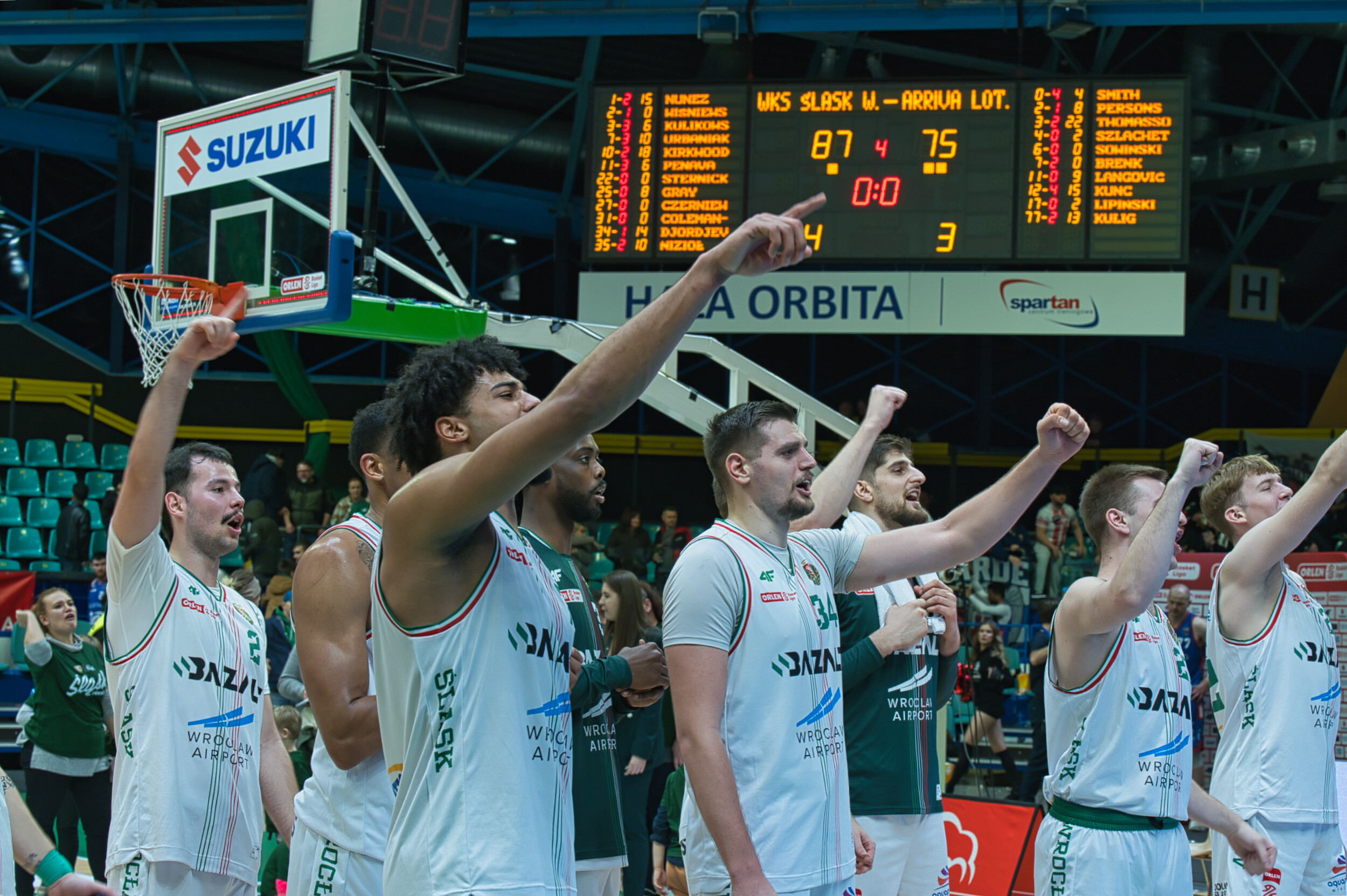 Śląsk Wrocław przez trzy kwarty gonił wynik, a emocje sięgały zenitu! Trenerzy intensywnie reagowali na każdą akcję. W końcówce Śląsk prowadził jednym punktem, lecz ostatecznie przegrał na własnym parkiecie trzema punktami. Mimo widowiskowych wsadów, pozostaje niedosyt po meczu!