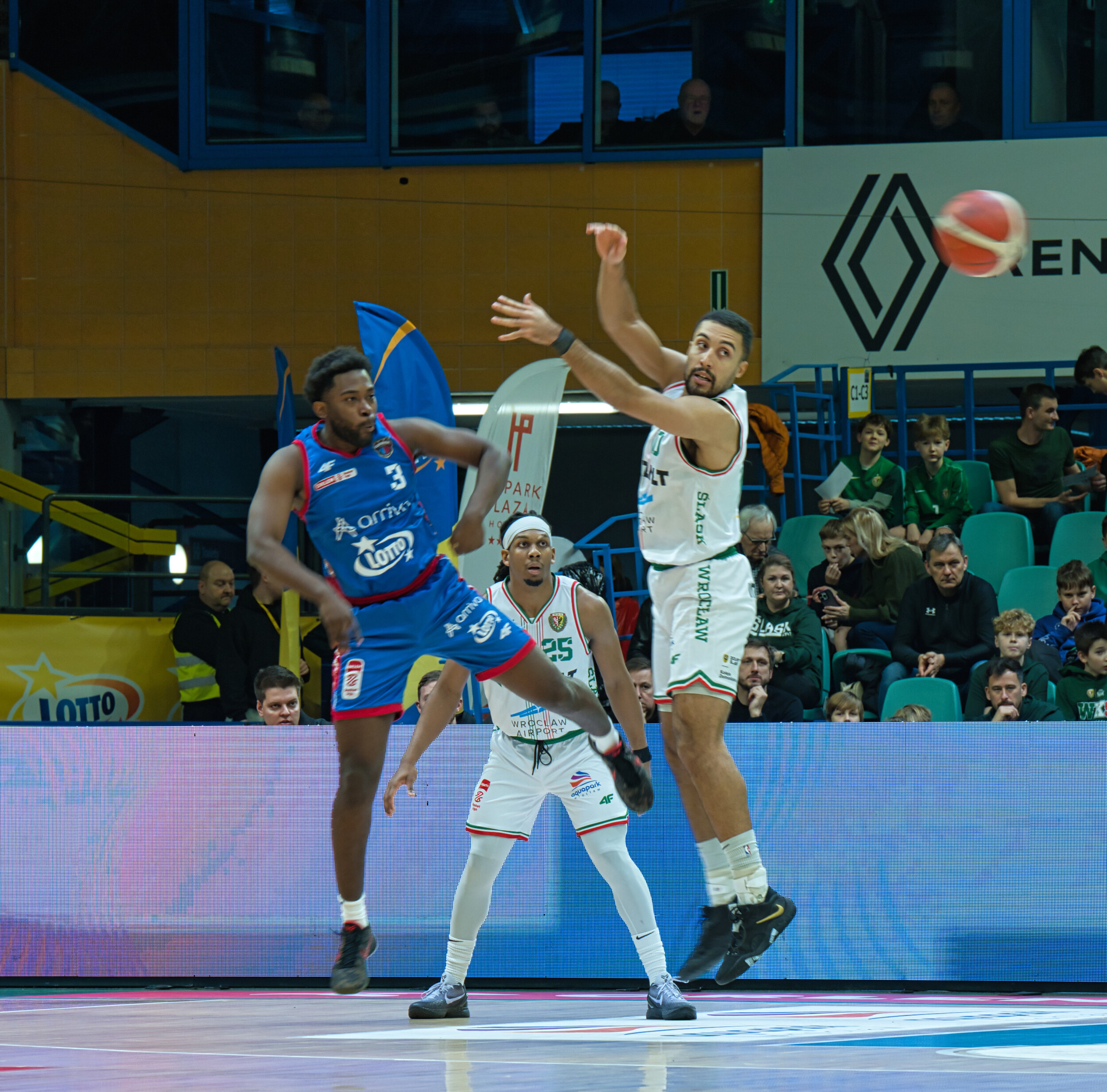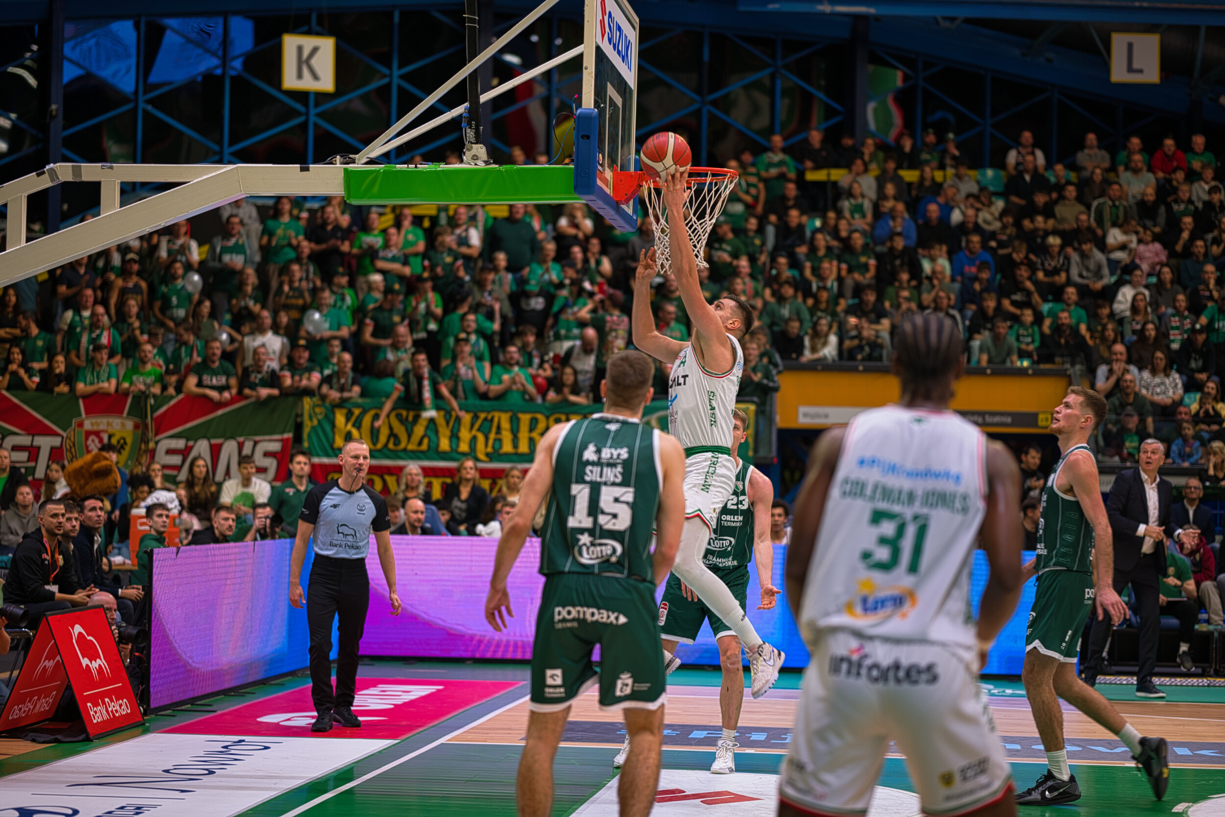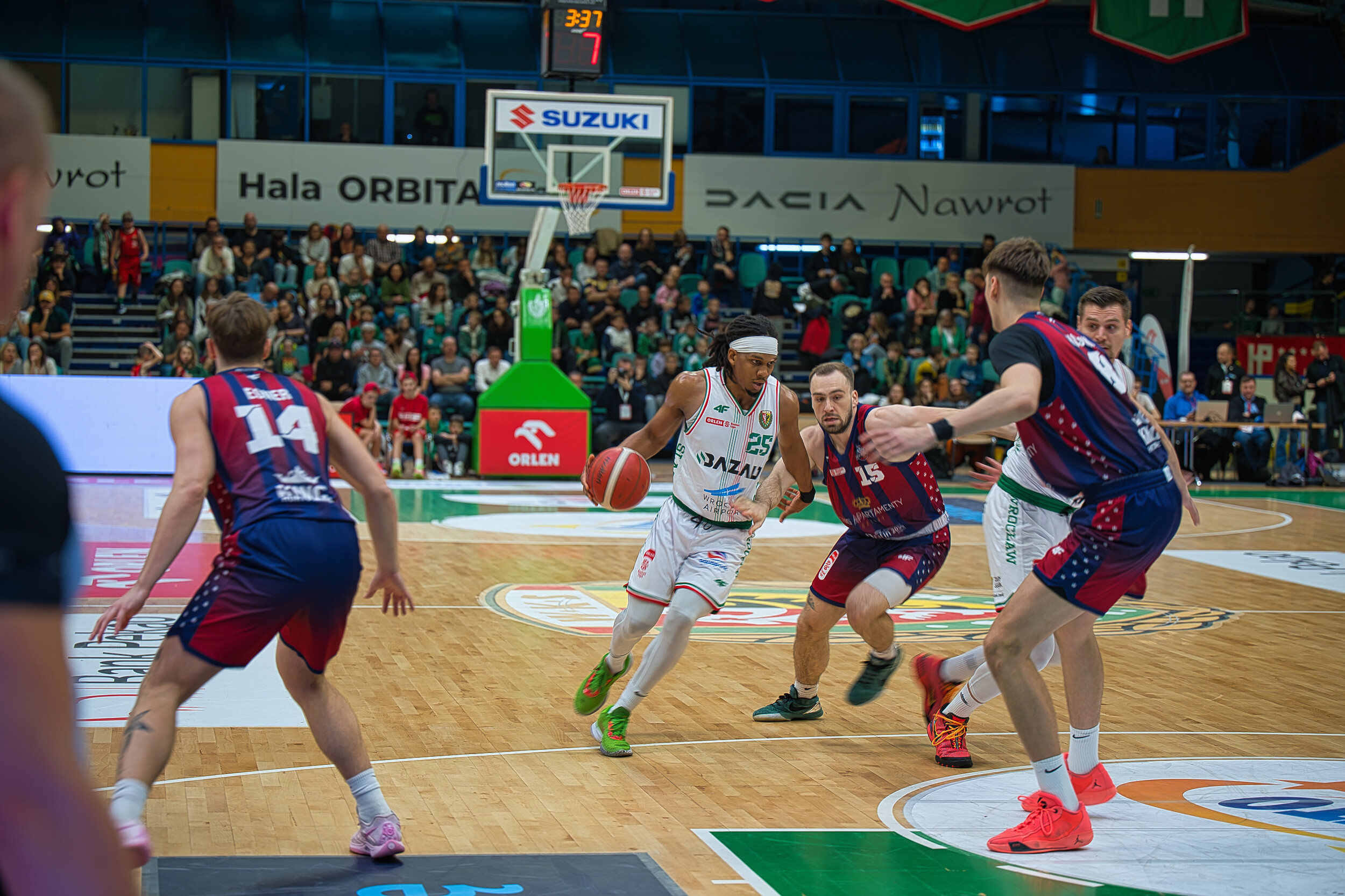 Śląsk Wrocław przez trzy kwarty gonił wynik, a emocje sięgały zenitu! Trenerzy intensywnie reagowali na każdą akcję. W końcówce Śląsk prowadził jednym punktem, lecz ostatecznie przegrał na własnym parkiecie trzema punktami. Mimo widowiskowych wsadów, pozostaje niedosyt po meczu!